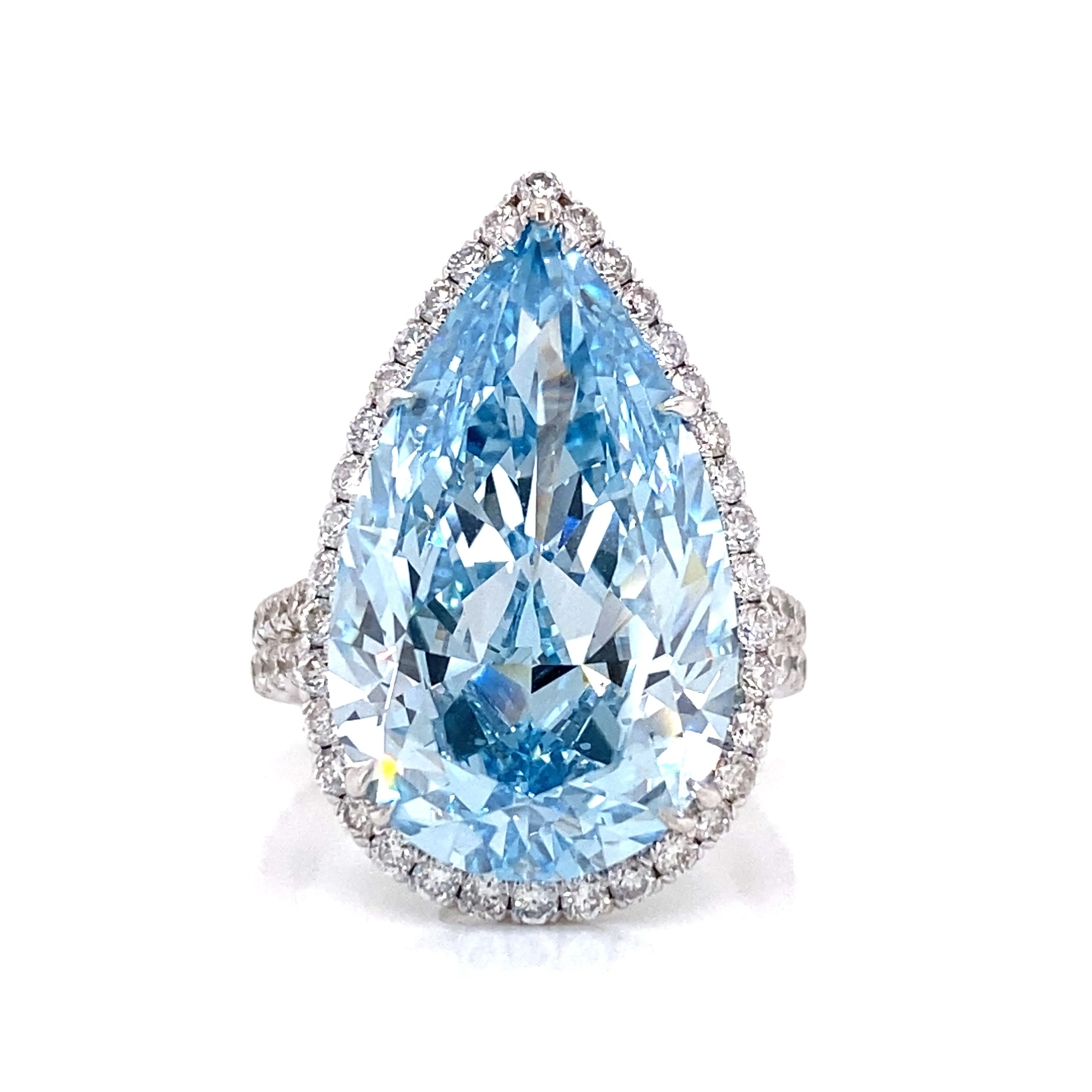 CIELO 15 CARAT PEAR SHAPE FANCY BLUE DIAMOND ENGAGEMENT RING 18K WHITE GOLD GIA CERTIFIED 13 CT BY MIKE NEKTA