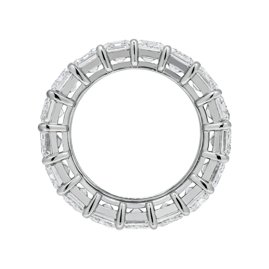 The ELSA Wedding Anniversary eternity band features 17 Emerald Cut 70 pointer diamonds weighing a total of approximately 11.91 carats, Shared Prong set in Platinum.