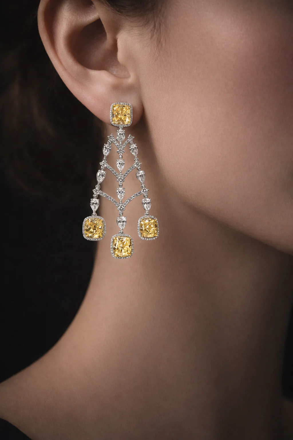 BIG Hanging Yellow Diamond Earrings For Ladies: