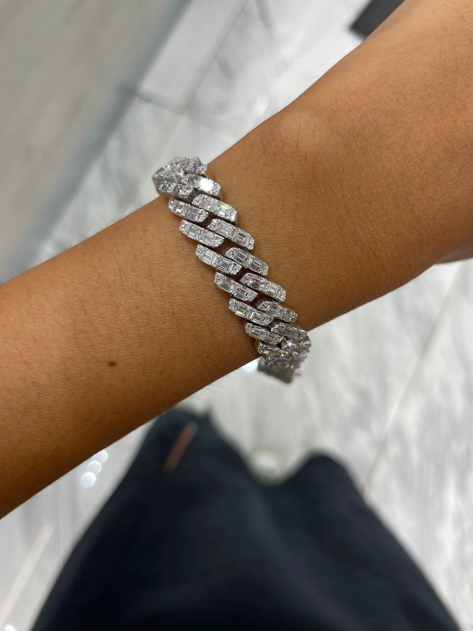The HAVANA women’s 17 Carat Diamond Cuban Link Chain Bracelet features EMERALD CUT DIAMONDS brilliants weighing a total of approximately 17 carats, set in 14K White Gold.